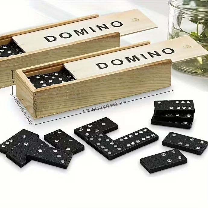 28 komada igre šahovske ploče, zabavne stolne domine za guranje gore-dolje, pogodne za kampiranje i putovanja na otvorenom, drvena kutija, crne domino društvene igre za Božić, Noć vještica, Uskrs, okupljanja
