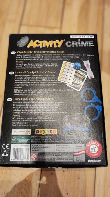 Policijske lisice klikću u igri Activity Crime! Pogodite zabavne riječi i fraze koje vas vode u mračni svijet kriminala.
