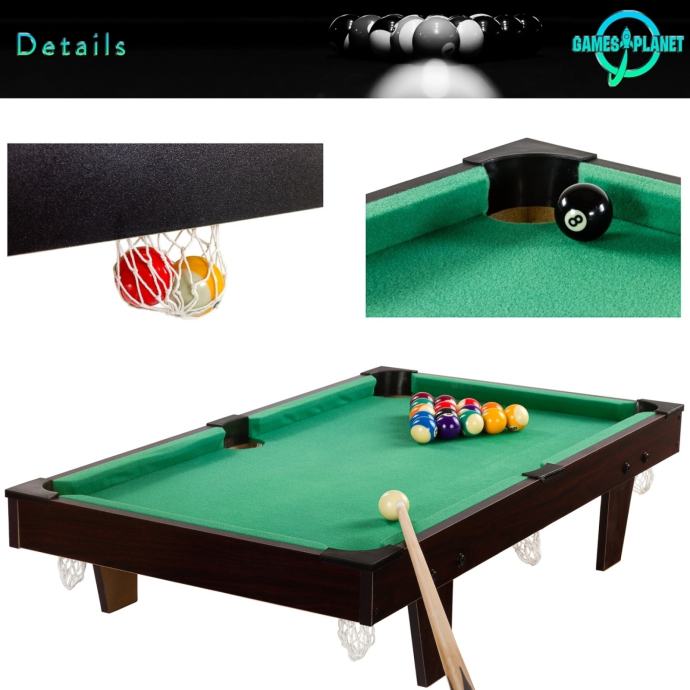 Dimenzije stolnog biljara: cca 92 cm (D) x 52 cm (Š) x 19 cm (V), težina: cca 8 kg,