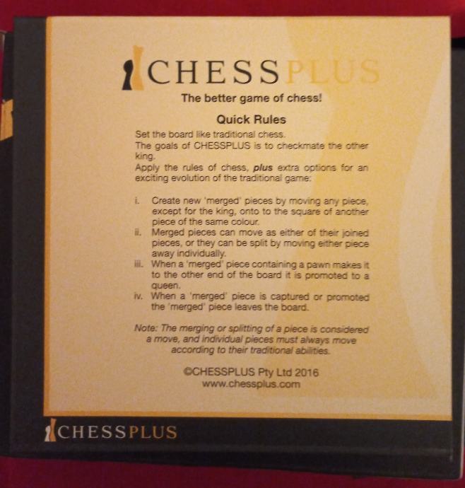 Moze se igrati kao klasicni sah ali i kao potpuno nova, puno jednostavnija igra. (Otkrila je je djevojcica od 12 godina!)