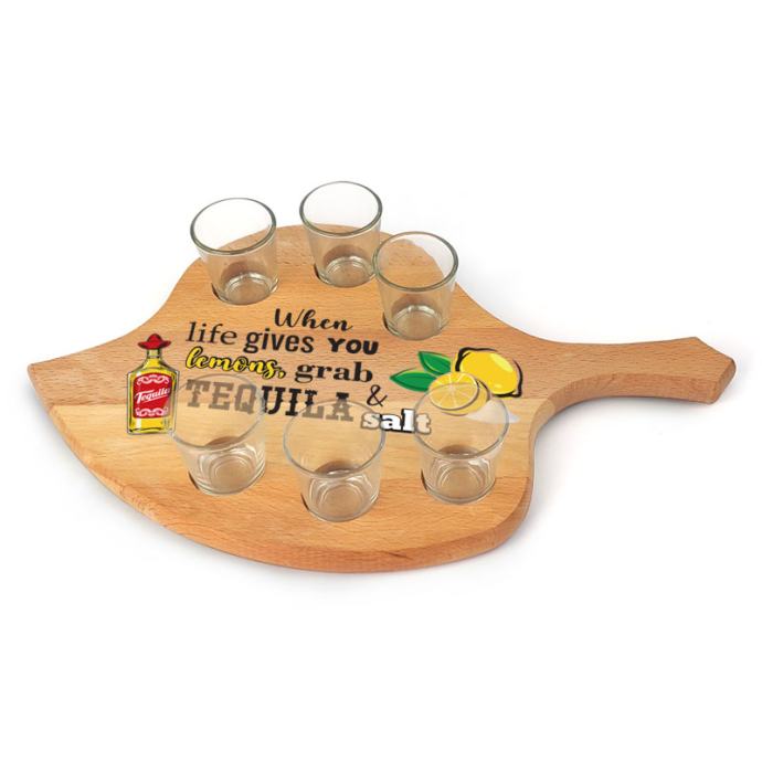 DASKA DRVENA SA 6 ČAŠICA S TISKOM When life gives you lemons...