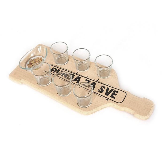 DASKA DRVENA BOCA SA 6 ČAŠICA I ZDJELICOM - S TISKOM Runda za sve