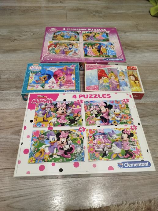 Prodajem set dječjih puzzli (Disney princeze, Minnie, Shimmer & Shine).