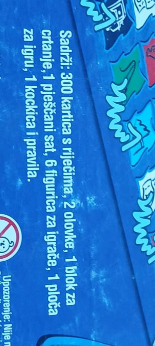 Društvena igra crtanja i brzog pogađanja. Za 10+ godina fale ovovka i blokić(može bilo koji) mapa i ostalo na broju.šaljem tisak pošta,njuškalo.