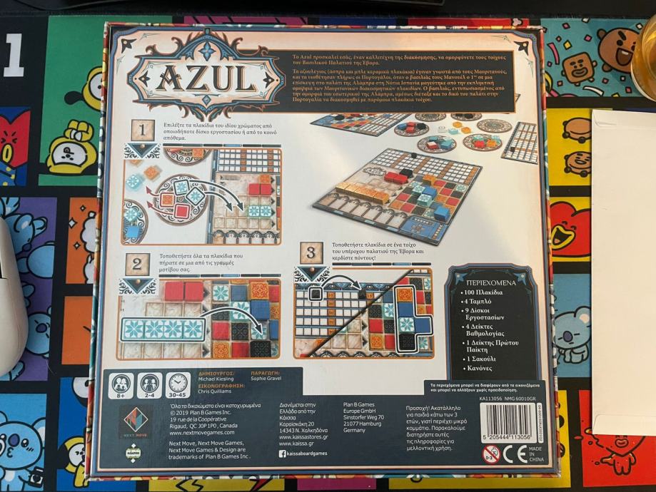 Prodajem društvenu igru Azul, otvorena i odigrana svega dva puta. Igra je na grčkom jeziku iako nema nikakvog teksta, pravila se mogu naći online / isprintati ih.