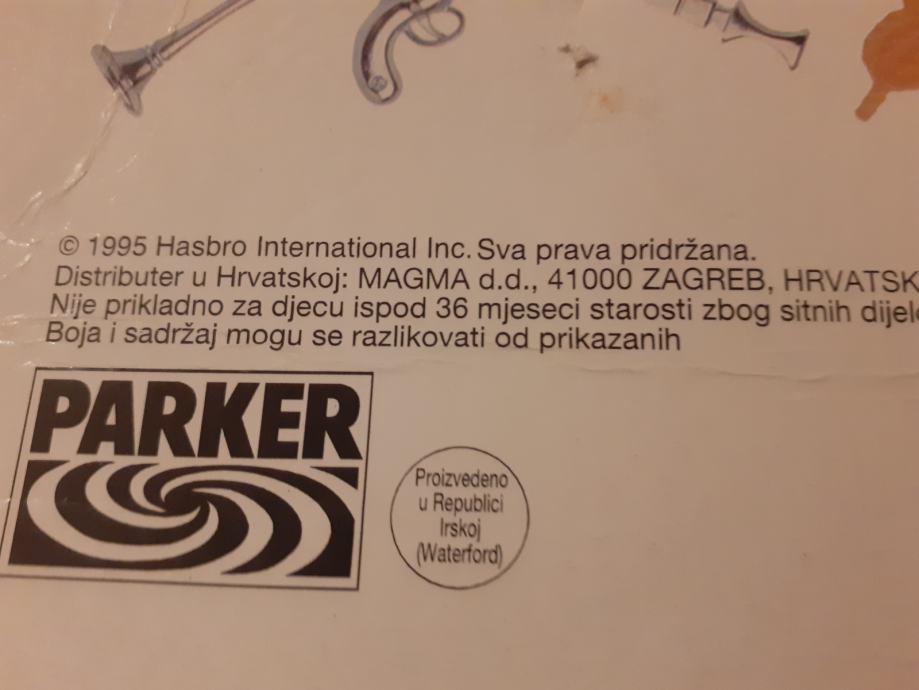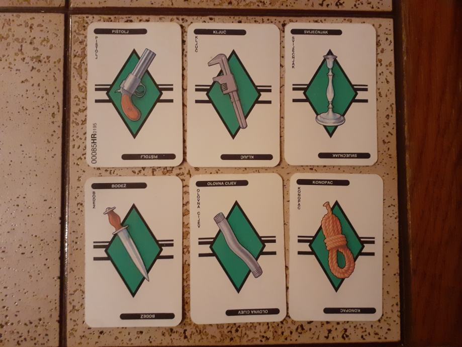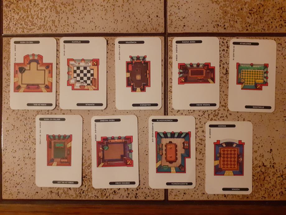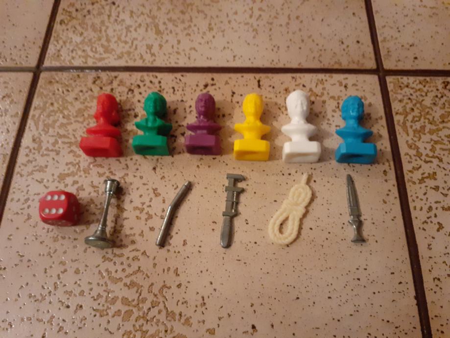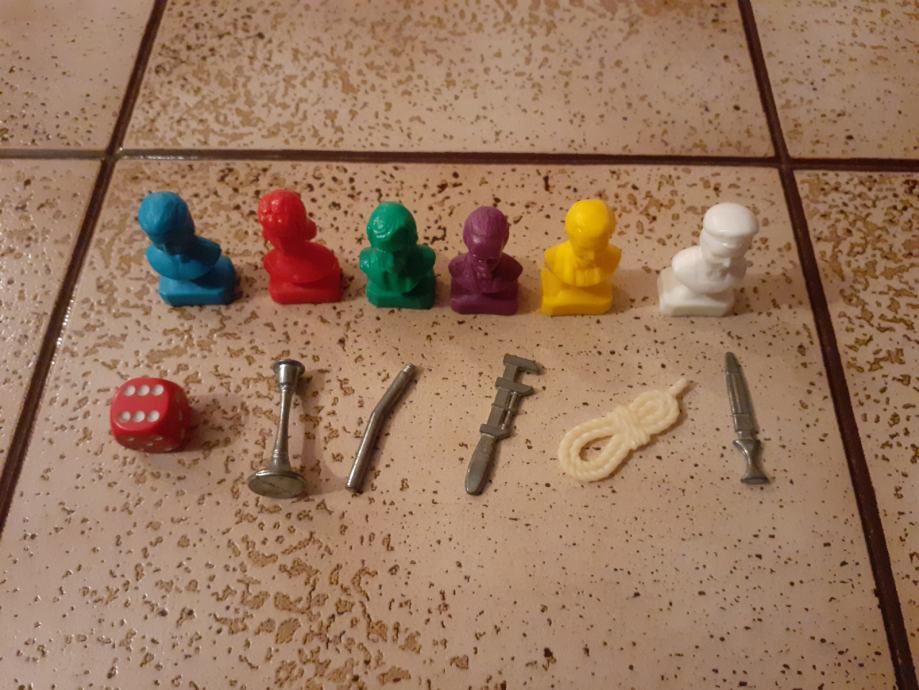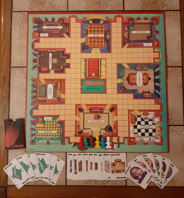 Prodajem društvenu igru Cluedo iz 1994. godine. Figurice, kartice, oružje i tabla su u vrlo dobrom stanju, pogotovo s obzirom na starost, dok je kutija u solidnom stanju, sve vidljivo na slikama. Sve kartice (9 prostorija, 6 ljudi, 6 oružja) i sve figurice (6 komada) su na broju, dok kod oružja fali samo pištolj. Made in Waterford, Republic od Ireland, Parker.