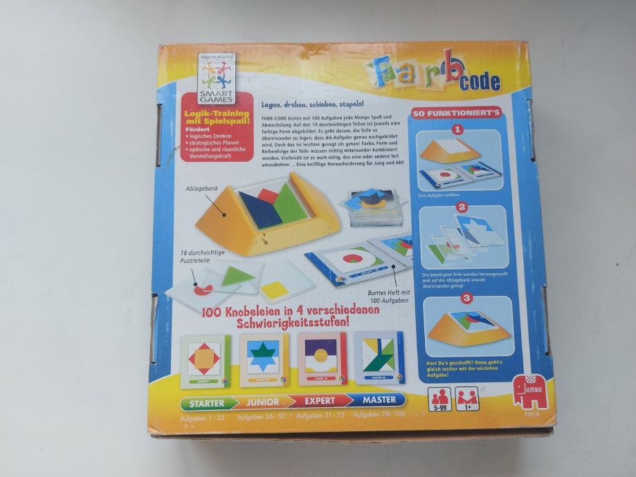Zabavna i pametna igra za djecu i odrasle, Farb code.Igra sadrži izazovne zadatke različitih razina (starter,junior,expert,master). Kupljena u Njemačkoj. Sada prodajem povoljno.