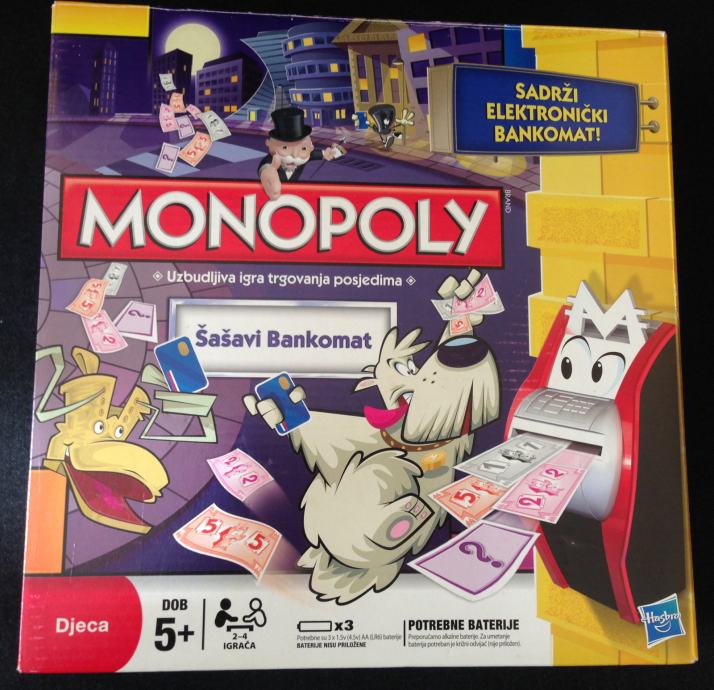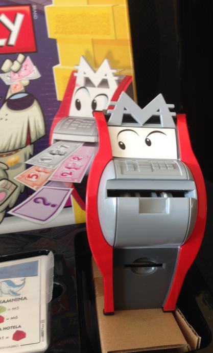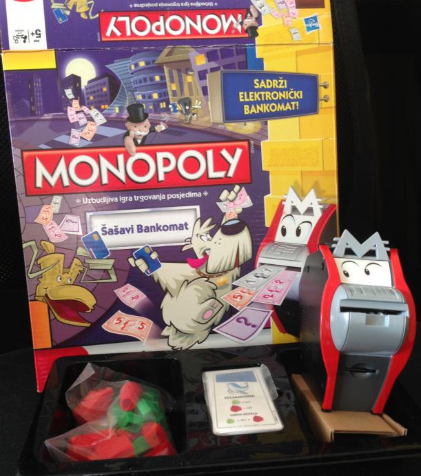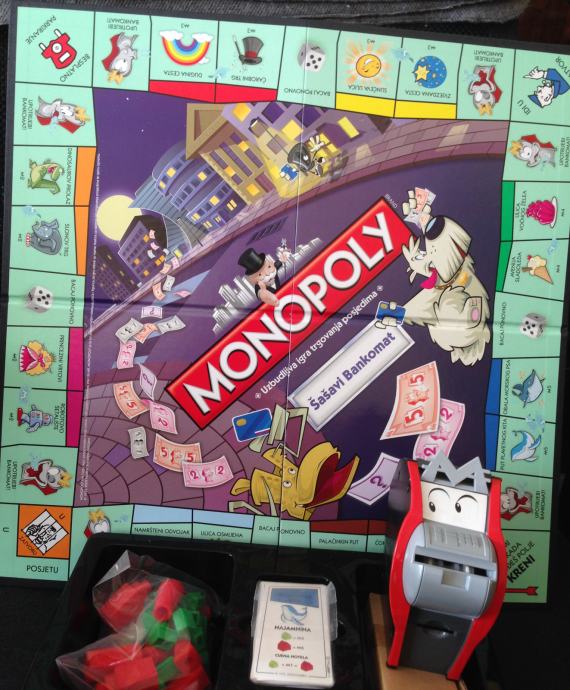 Nešto drugačiji Monopoly prilagođen djeci s dodatkom šašavog bankomata. Monopoly nikada nije korišten, samo je otvoren i isproban.