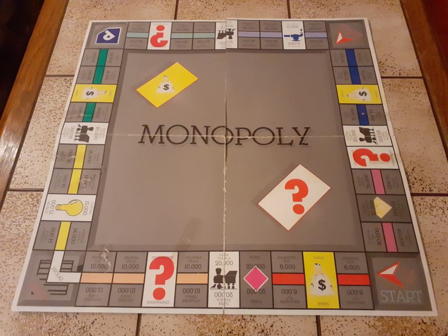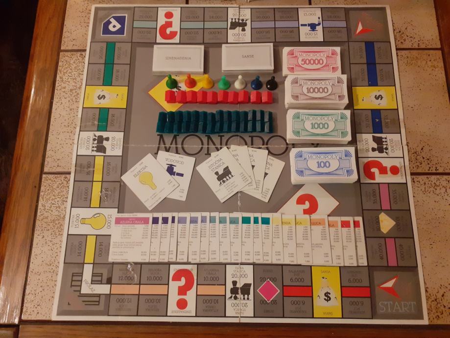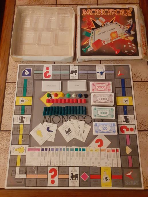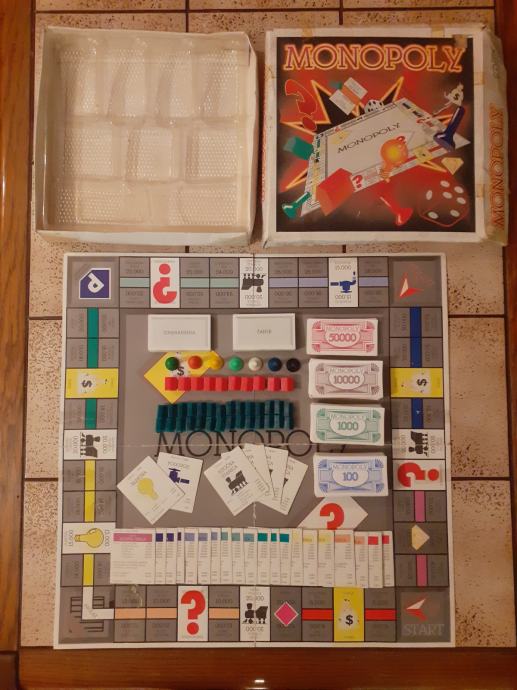Prodajem društvenu igru Monopoly, starijeg tipa. Nažalost ne znam koliko je točno igra stara, ali sigurno je 20+ godina. Figurice, hoteli, kuće, novčanice i kartice su u vrlo dobrom stanju, pogotovo s obzirom na starost, dok je kutija u solidnom stanju, sve vidljivo na slikama. S godinama se par figurica/kartica/novčanica izgubilo, pa navodim točno sve što je ostalo: