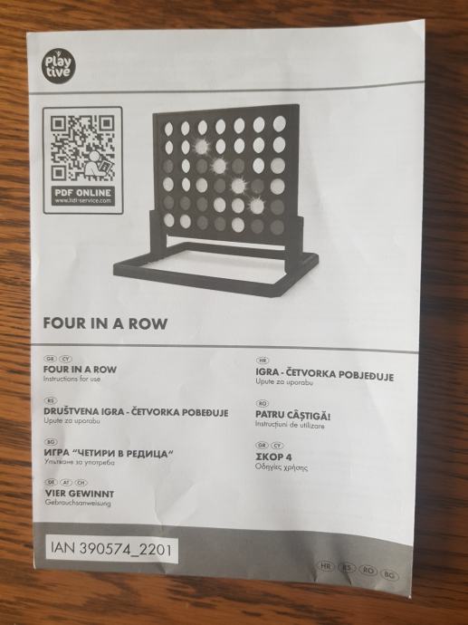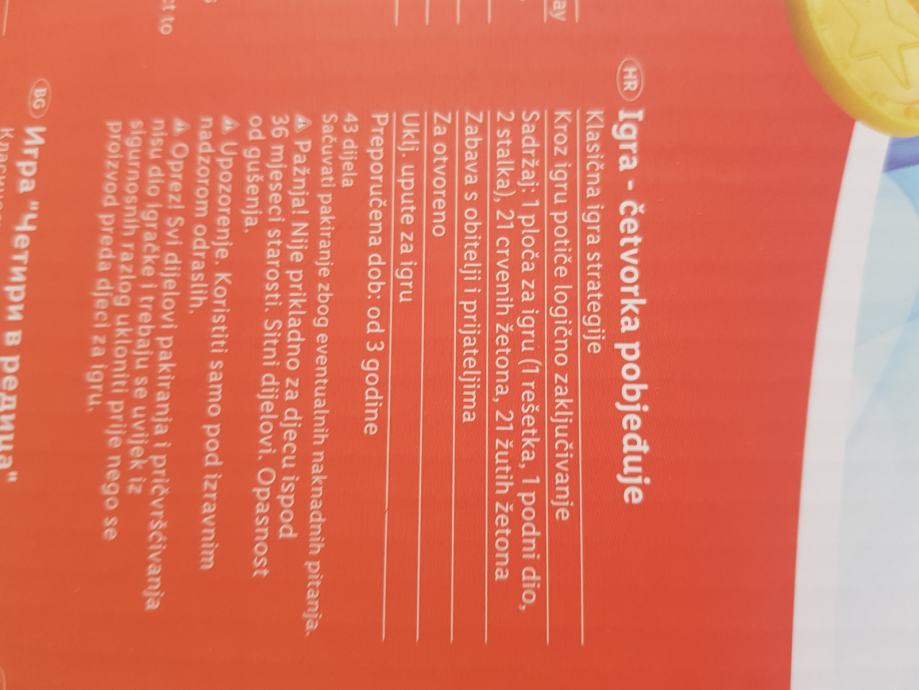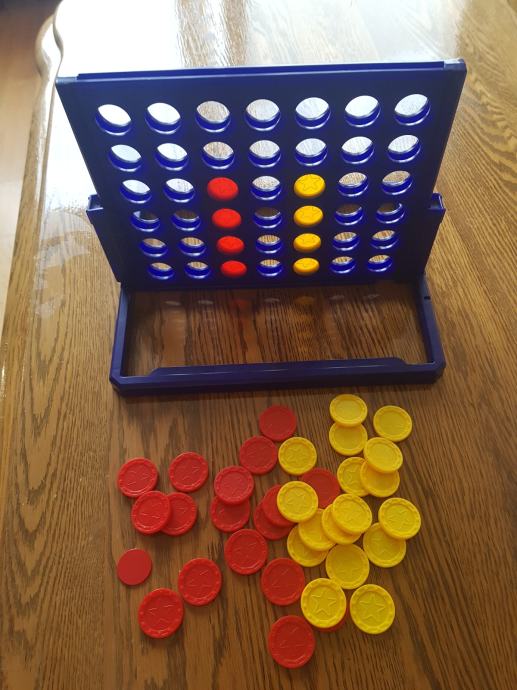 Društvena igra četvorka pobjeđuje ubacivanjem žetona. Svaki igrač dobije set žetona i ubacuje naizmjenićno, nastojeći dobiti 1 red od 4 žetona od svoje boje. Istovremeno svog protivnika nastoji sprijećiti da spoji svoja 4 žetona. Igrač koji prvi popuni niz od 4 žetona pobjeđuje. Kroz igru djete se potiće na logično zaključivanje.