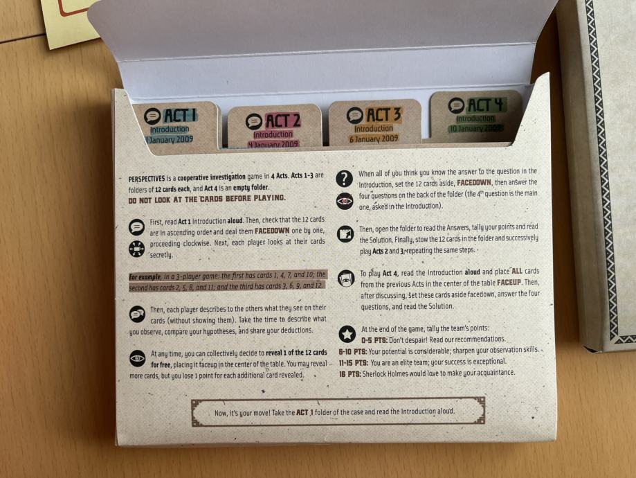 Društvena igra "Perspectives". Igra je u odličnom stanju - jednom odigrano, sve komponente su sačuvane i vraćene u početno stanje, karte su vraćene u originalni poredak.
