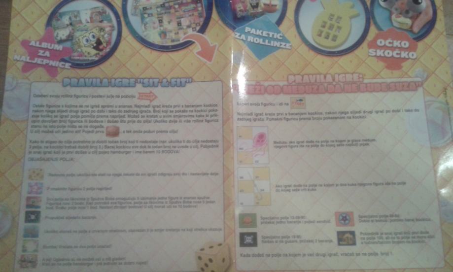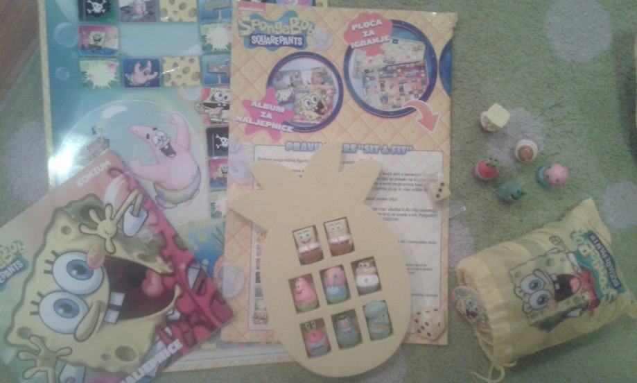 Društvena igra Spužva Bob sa flizovima, rezervnim figuricama, albumom ...prodajem za 40 kn + poštarina 20 kn.