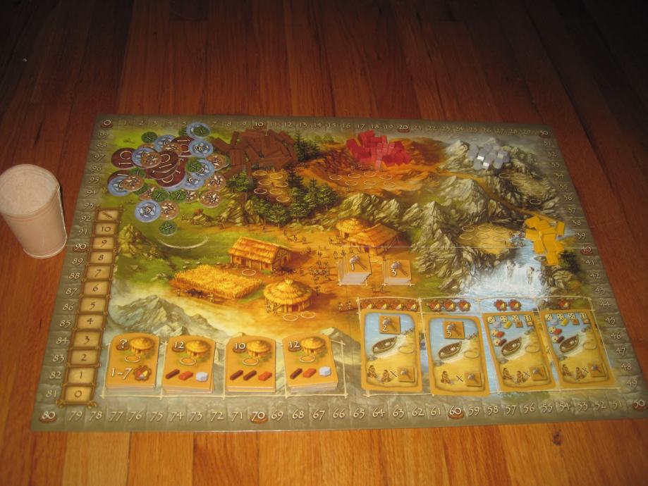 Igra sa odvija na glavnoj igraćoj ploči, a svaki igrač posjeduje i svoju ploču. Na svojoj ploči drži ljude, resurse, alate, građevine, civilizacijske karte. Resursi su zlato, drvo, hrana, cigla, kamen. Igrači počinju sa pet članova, a do kraja igre pleme može porasti najviše na deset.