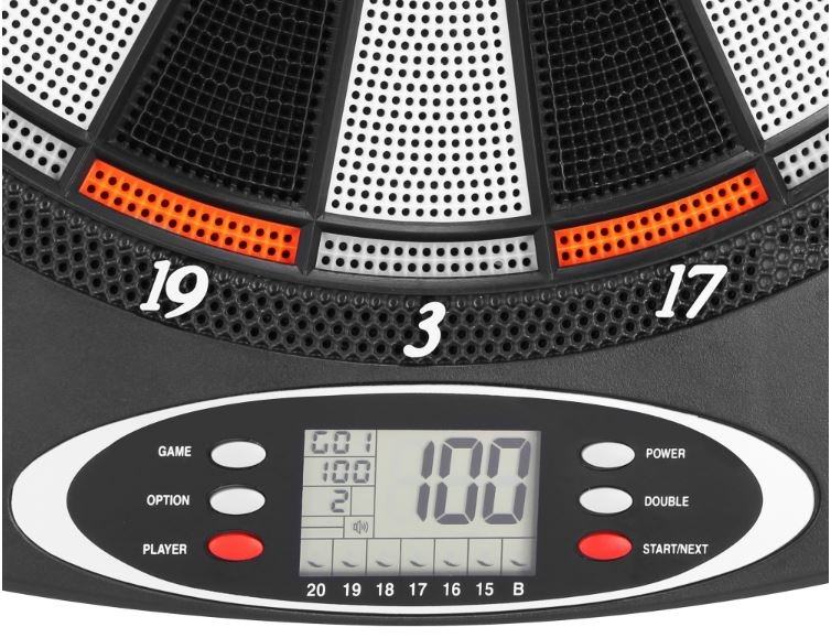 Pikado sa 159 različitih varijanti igre za do 8 igrača sa 6 strelica i dodatnim izmjenjivim vrhovima. Podešavanje glasnoće i jasan LED zaslon informiraju vas o trenutnim točkama igre.Materijal: PPDizajniran za 1-8 igrača159 različitih igaraU setu: 6 strelica s plastičnim vrhom, dodatni vrhoviNapajanje s 3 AA baterije (nisu uključene)Zvučni efektiVeličina: 43 x 37,8 x 2,5 cmTežina: 1,5 kg