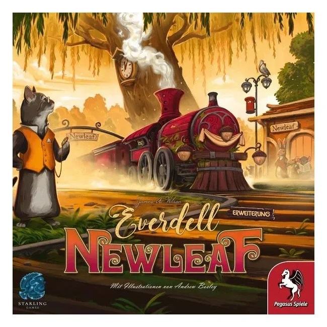 Everdell’s bustling city Newleaf has just opened its first train station, and many new critters and big ideas are rolling in. Newleaf introduces brand new critters, constructions, and exciting events to draw Visitor cards to your blossoming city! It also features the Train Station Board, resource-delivering Train Cars, travel-worthy Tickets, and Reservation Tokens!