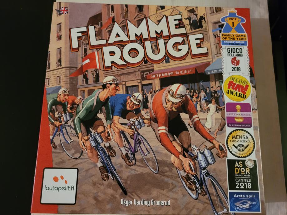 Flamme Rouge je brza, taktička igra biciklističkih utrka u kojoj svaki igrač upravlja timom od dva biciklista: Rouleura i Sprinteura. Cilj igrača je biti prvi koji će prijeći ciljnu liniju s jednim od svojih biciklista. Igrači pomiču svoje bicikliste prema naprijed povlačeći i igrajući karte s posebnog biciklističkog kupa, iscrpljujući ih dok voze. Koristite zračne struje kako biste izbjegli iscrpljenost i postavite svoju momčad za dobro tempirani sprint do pobjede.