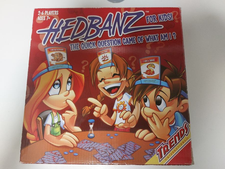 Hedbanz by Spin Master Games zabava je za cijelu obitelj!6 traka za glavu i ilustracije karata poput "Ja sam sunčane naočale" ili "Ja sam zmija".Postavite kreativna pitanja poput Jesam li ja pizza?" ili "Jesam li ja pas?" kako biste saznali što je vašoj kartici iz kategorije životinja, stvari ili hrane.Igranje Hedbanza je jednostavno: samo uzmite kartu, postavite je i igrajte! Odaberite jednu traku za glavu i uzmite slikovnu karticu bez gledanja u nju. Stavite traku za glavu i gurnite karticu u traku za glavu sa slikom okrenutom prema ostalim igračima.