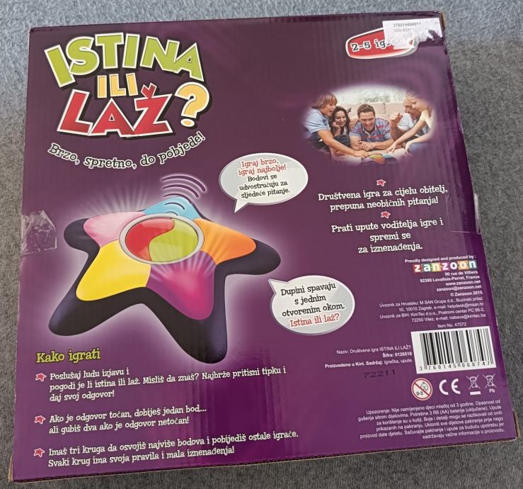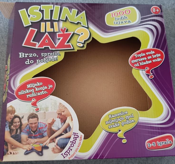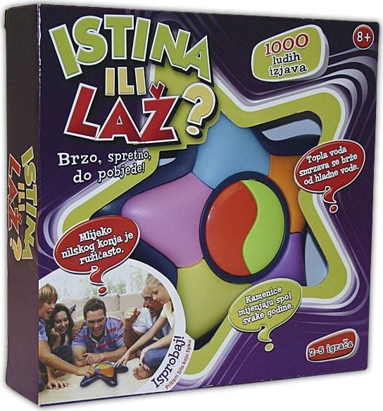 Društvena igra za cijelu obitelj, prepuna neobičnih pitanja! Za 2 do 5 igrača. Poslušaj ludu izjavu i pogodi je li istina ili laž. Misliš da znaš? Najbrže pritisni tipku i daj svoj odgovor!