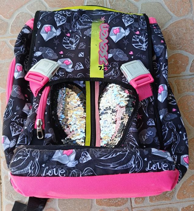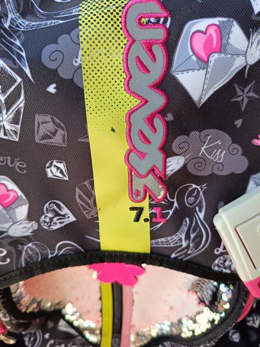 Seven ruksak/torba za školu, korišteno dvije školske godine, jako očuvano, ispravmo, oprano/čisto, anatomska, mekana pozadina i naramenice.