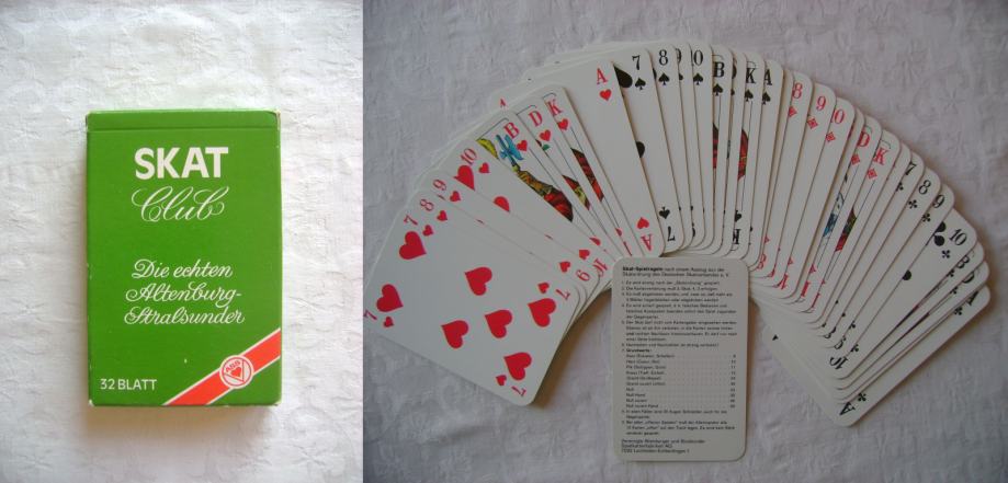 Igraće karte za skat - Skat Club - 32 komada, potpuno nove, nekorištene, kutija nije savršena - stanje je vidljivo na slikama.
