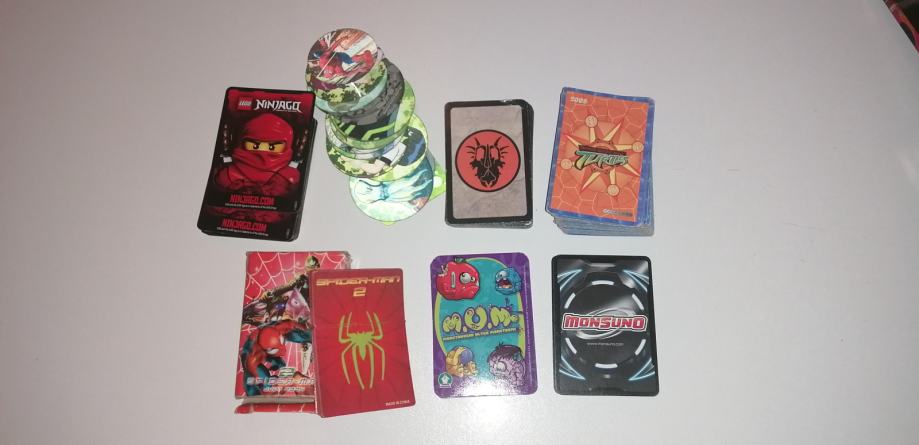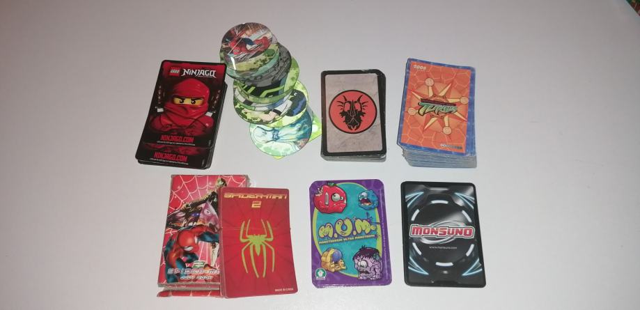 Karte razne lot - ninja turtles, spiderman, dinosauri, ninjago, mum, monsuno, ben 10 cca 200 komada