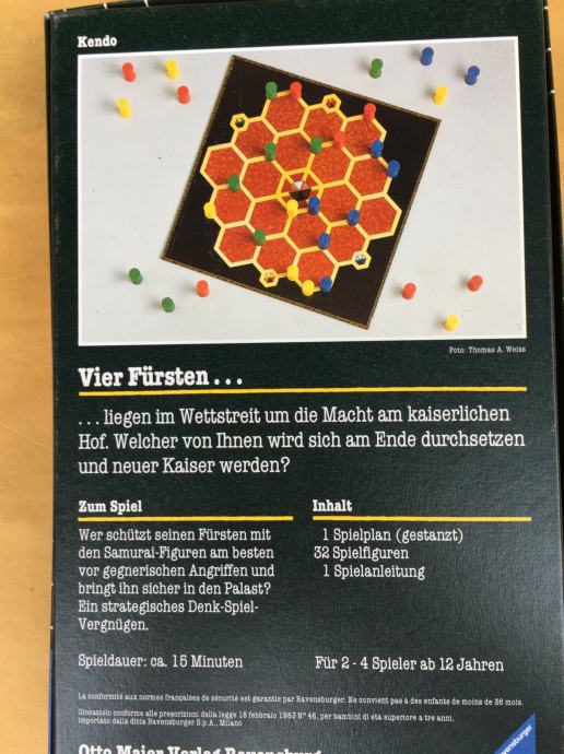 Prodajem KENDO društvenu igru na tabli. Osmislili su ju Keith Budenn i Tilman Michinski za 4 igrača s trajanjem od oko 30 minuta. Rabljeno, upute na njemačkom, ali dostupne su na internetu i na engleskom jeziku.