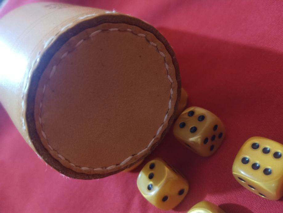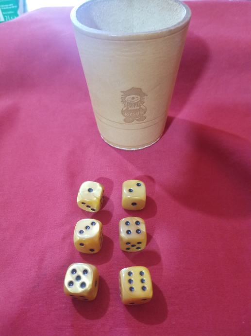 Nekoristene kvalitetne kockice za jamp i kozna sivana salica za bacanje istih
