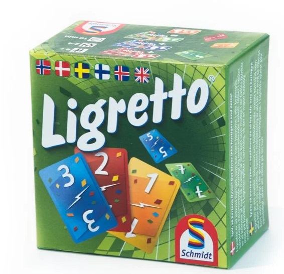 Let the cards fly! Ligretto is a turbulent card game that no home should be without. It is fascinating, entertaining, and astoundingly simple! Simultaneously, all players must try to discard as many cards of the same colour as possible from 1 to 10. Players need to be fast, clever and skilful. This game provides 160 green Ligretto playing cards. If you combine two different-coloured boxes of the Ligretto basic game, up to 8 players can participate. And if you use all three different boxes, you can play with up to 12 persons. Contents: 160 cards Ages: 8+ for 2 - 4 playersPlaying time: 10 minutes