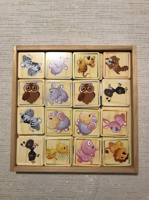 Memory zivotinje 32 komada, drvene, svi dijelovi su tu, ali nemaju poklopac Brojevi i boje.. kao mini puzzle, slozi, prebroji, deblji papir, tanji sjajni karton Zajedno 10€ Svaka po 6€