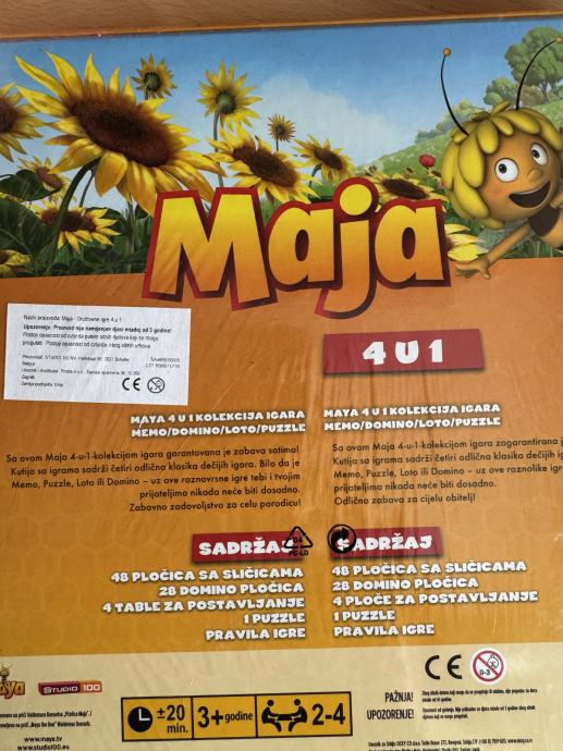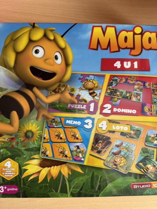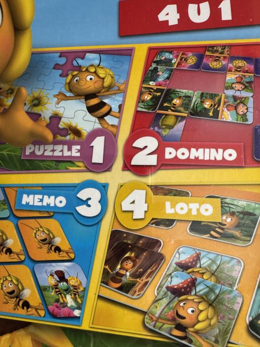 Novo, neotpakirano, 4 igre s motivom Pcelice Maje.. puzzle, domino, loto i memo.. uzrast 3+