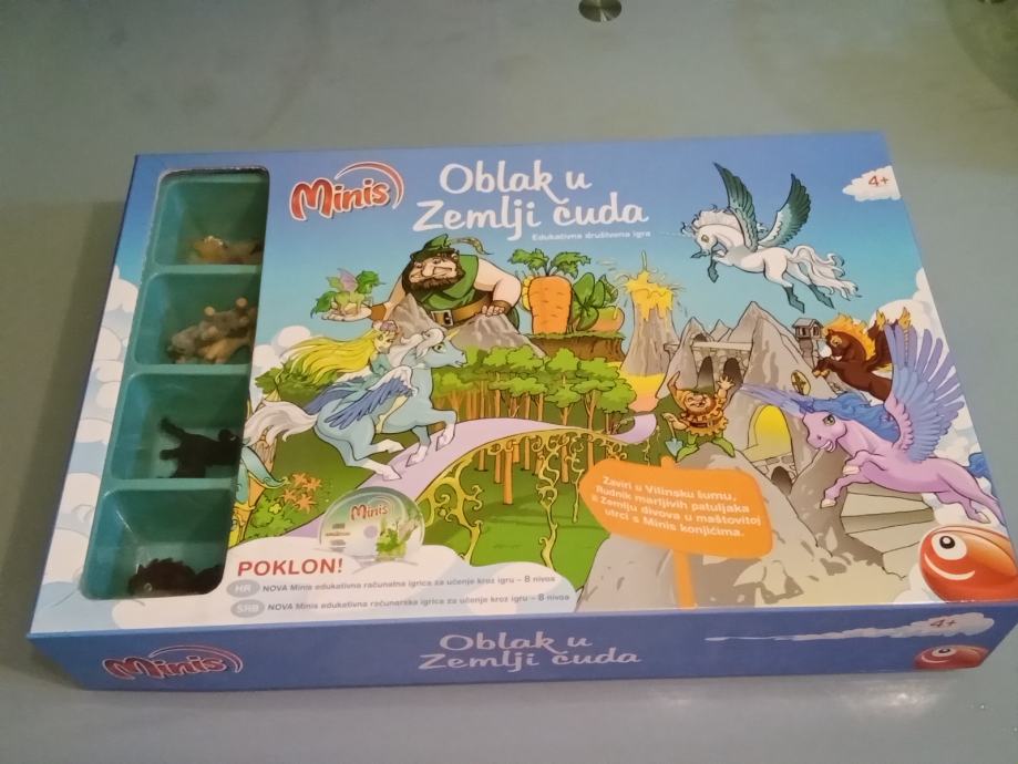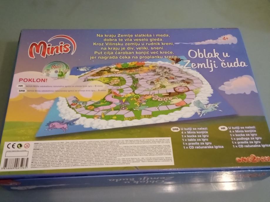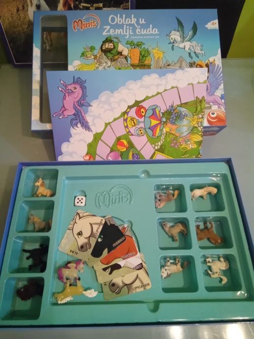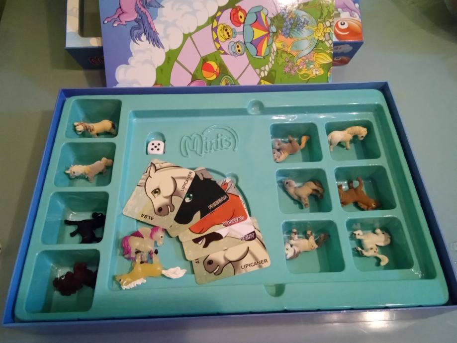 Kompletna igra ; velika ploča 60x60cm od tvrdog kartona s figuricama Minis konjića, cd edukativna igra, kocka i upute za igru u originalnoj kutiji odlično očuvanom.