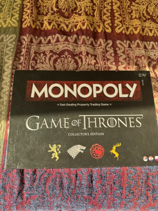 Prodajem društvenu igru Monopoly: Game of Thrones, igranu samo jednom – stanje kao novo! Sve kartice, figure i dijelovi su kompletni i uredno spremljeni u originalnu kutiju.