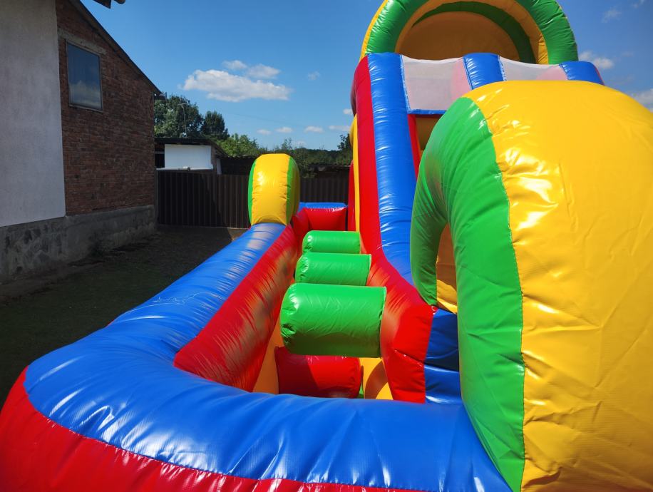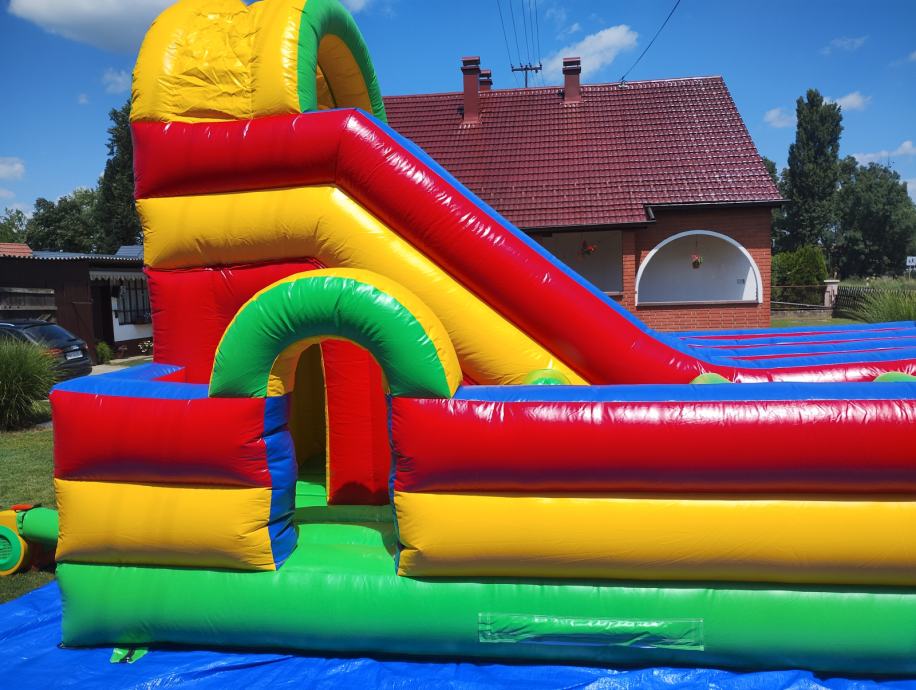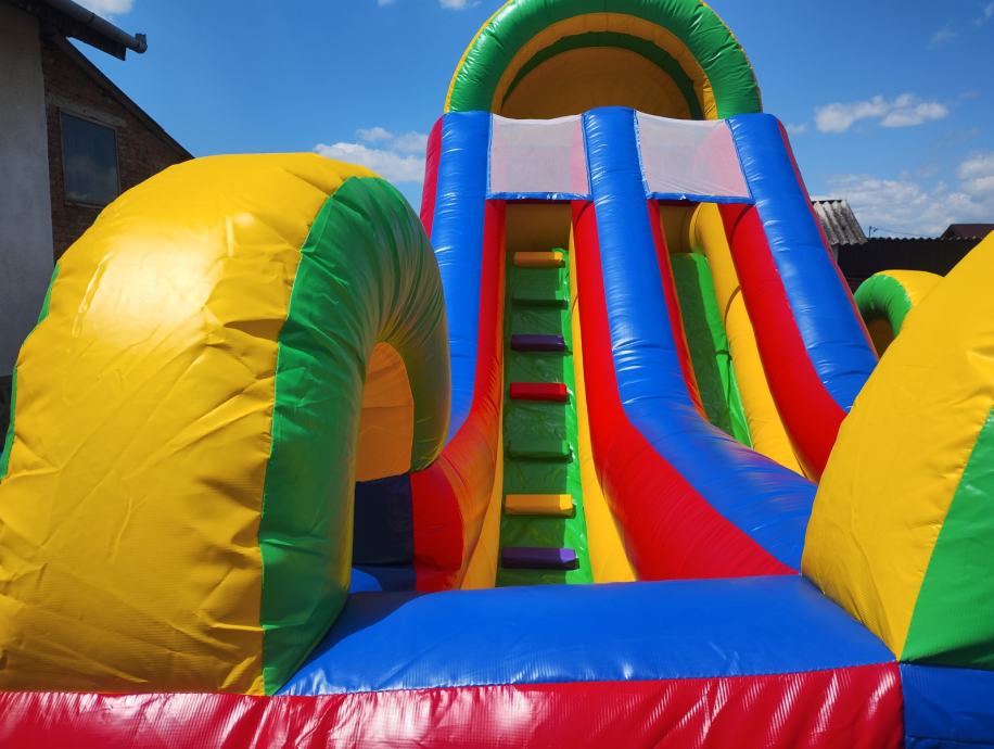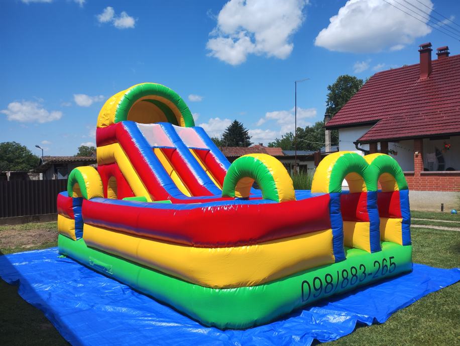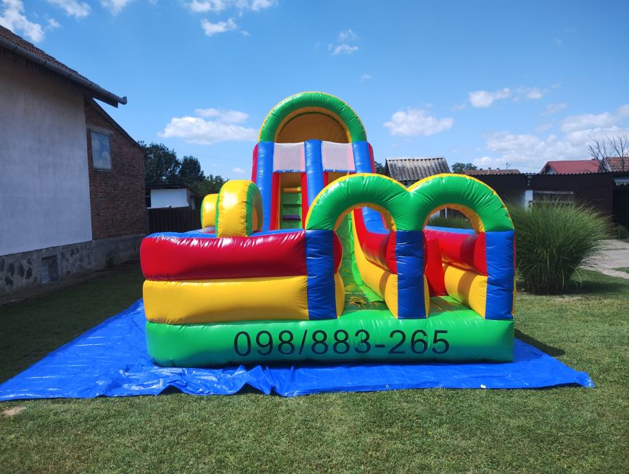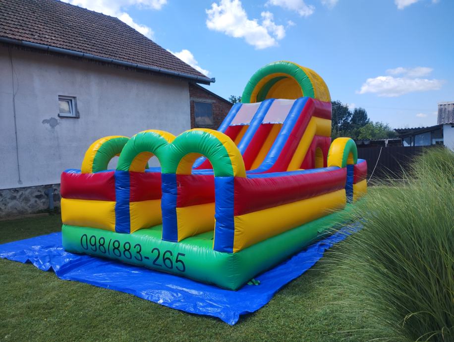 Prodajem napuhanac igraonicu za djecu do 10g. Dimenzije DŠV 6x4x4 m . Star godinu dana, s nikad bušen, uz njega dolaze u bojama maletijali za eventualno krpanje, te puhač.