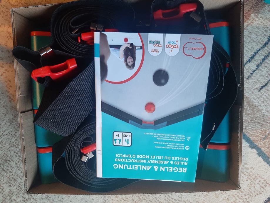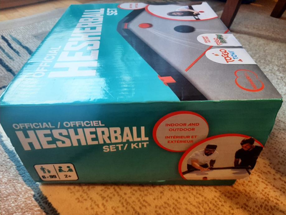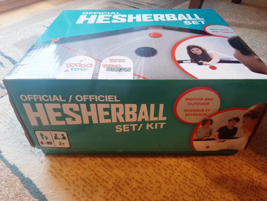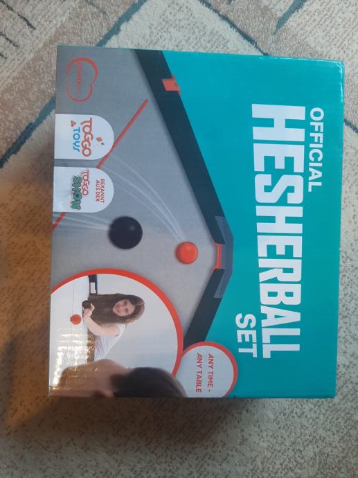 Prodajem obiteljsku društvenu igru Hesherball set, novo i nekorišteno. Igra se sastoji od toga da se koristi bilo kakav stol, pripadajuće elastične trake i loptica s pomoću kojih se loptica dobacuje i odbija.