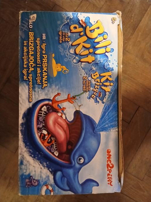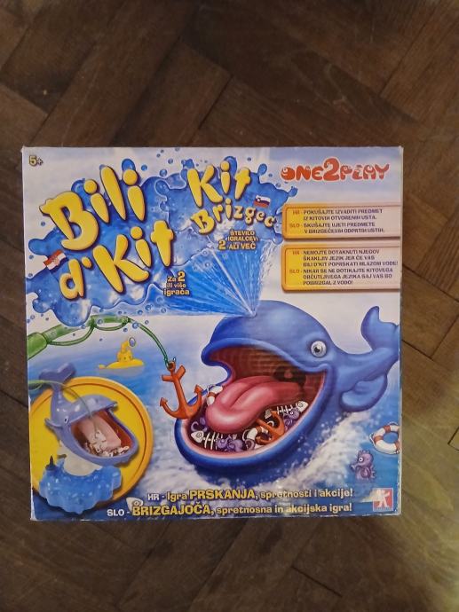Prodajem društvenu igru Bili Kit Brizgač od proizvođača One2Play. Radi se o igri prskanja, spretnosti i akcije u kojoj igrači vade predmete iz usta kita koji može poprskati vodom u svakom trenutku. Igra je namijenjena djeci od 5 godina na više, a može je igrati 2 ili više igrača.