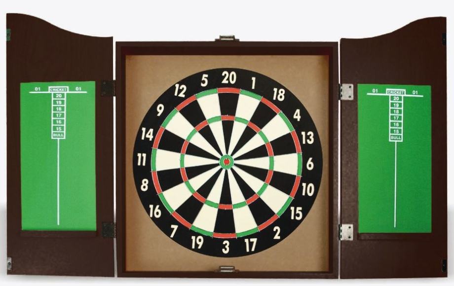 Pikado ormarić od MDF (medium density fibreboard) i tradicionlanom dekoracijom Pub & Lodging. Pikado ima 2 igre, na svakoj strani po jedna. Na drugoj strani je igra Target Bullseye, igra sa bonus točkama, koja je podeljena na 8 krugova klasične boje.Točke su utisnute na površini ploče.Uključena oprema za vješanje.Deljenje na 20 polja i 2 centra klasičih boja.Dodatno dobijate kredu i krpicu za unutarnju tablu.Metalni okvir za vješanje.6 strelica u prilogu.Dimenzije: 42,7x42,7x1,2 cmTežina: 8 kg