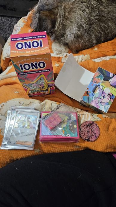 Prodajem Pokemon Iono - premium tournament collection, fale neke stvari. Dobijete 4 kartice, metalni coin, kockice, kutijicu za spremanje i futrole za kartice.