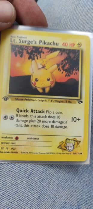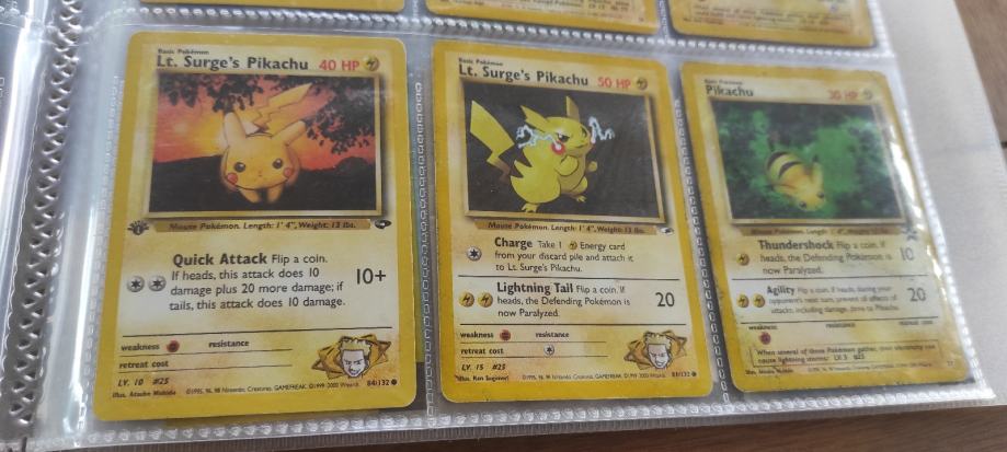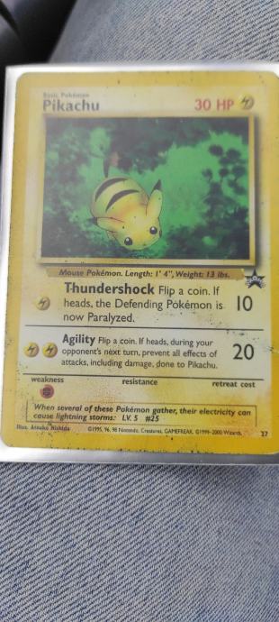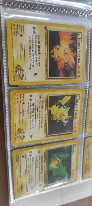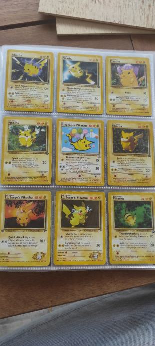 Za svakog kolekcionara,trgovca ili prekupca vrhunska prilika koja se sastoji od 36 Pikachu ORIGINALNIH Pokemon karata od 1998/99 i novijih.Vrhunske cjenovno top karte,crveni obrascici,1ed,holo,McD.Stanje karata od MINT-LIGHT PLAYED..Odlicno ulaganje u "Pokemon dionice".Vecina karata na eby,crdmrkt,troll isl.postizu abnormalno visoke cijene+postarine+uvedeni porezi za posiljke van EU.Velike cijene ako sve zbrojite zar ne?Ovo je 100% prilika koja je tu!Odmah da odgovorim na pitanja o cijeni,DA I VISE NEGO FIXNA!Bez zamjena.Vidi i moje ostale oglase.