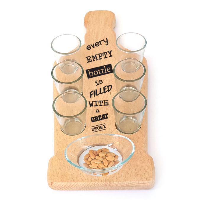 POKLON DASKA DRVENA SA 6 ČAŠICA I ZDJELICOM 40x16x2 CM - S TISKOM Ever