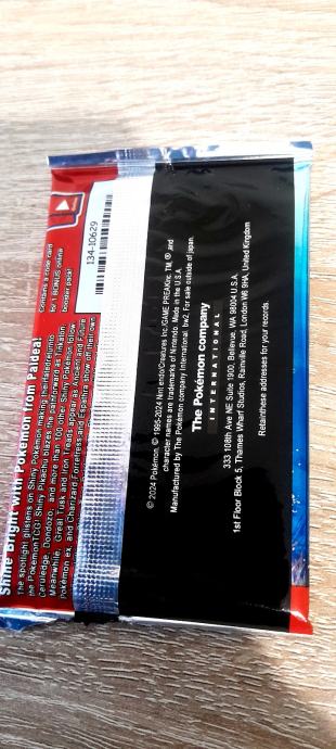 Prodajem booster sa fotografija ,paldean fates,vidi scan,sve slikano, proizvodjac ,THE POKEMON company,,international USA,,IMA U PAKETICU JEDNI SJAJNU I 9 OBICNIH KARATA ,VIDI FOTOGRAFIJE,cijena boostera je 10 eura ,Uplata t racun ,ili osobno na adresi,u bilo koje vrijeme,info,njuskalo ,mob 0989089681