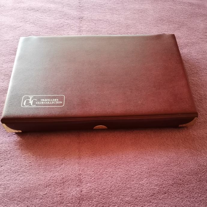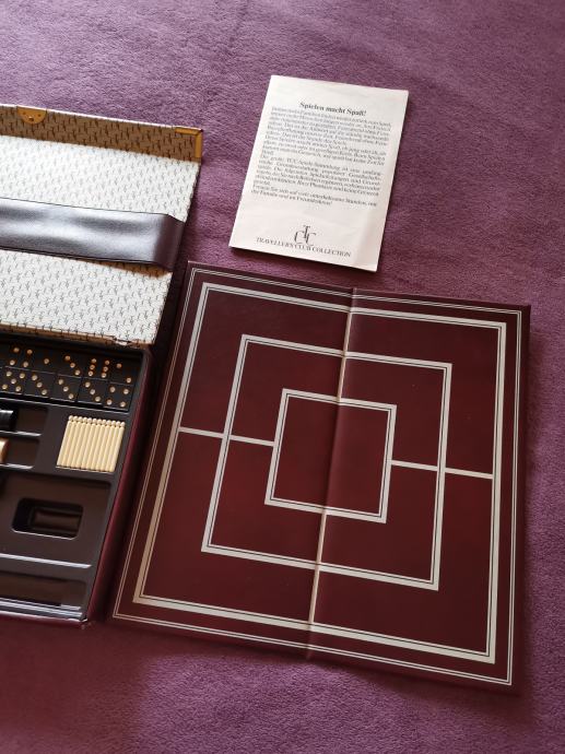 Prodajem vintage putni set stolnih igara u kožnoj torbi (umjetna koža).