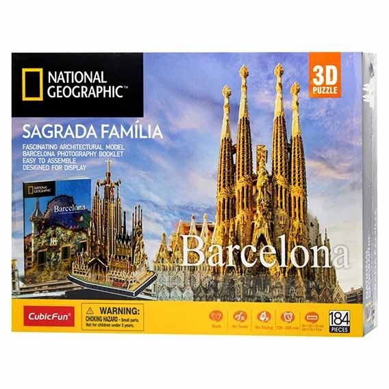 Bazilika Svete obitelji ili Sagrada Familia, krunsko je remek djelo arhitekta Antonija Gaudija, iako je ostala nedovršena nakon njegove iznenadne smrti. Bazilika se nalazi u Barceloni. Elementi 3D slagalice izrađeni su od kvalitetnih materijala i vrlo se lako sastavljaju i bez ljepila ostaju stabilni. Kada sastaviš ovu trodimenzionalnu slagalicu, osim ponosa imat ćeš nešto lijepo što si sam svojim rukama složio kao prekrasan ukras u sobi. Otkrij čari stvaranja nečega vlastitim rukama i budi ponosni vlasnik 3D slagalice skulpture! Ova slagalica dio je National Geographic serije slagalica "Svjetski gradovi".