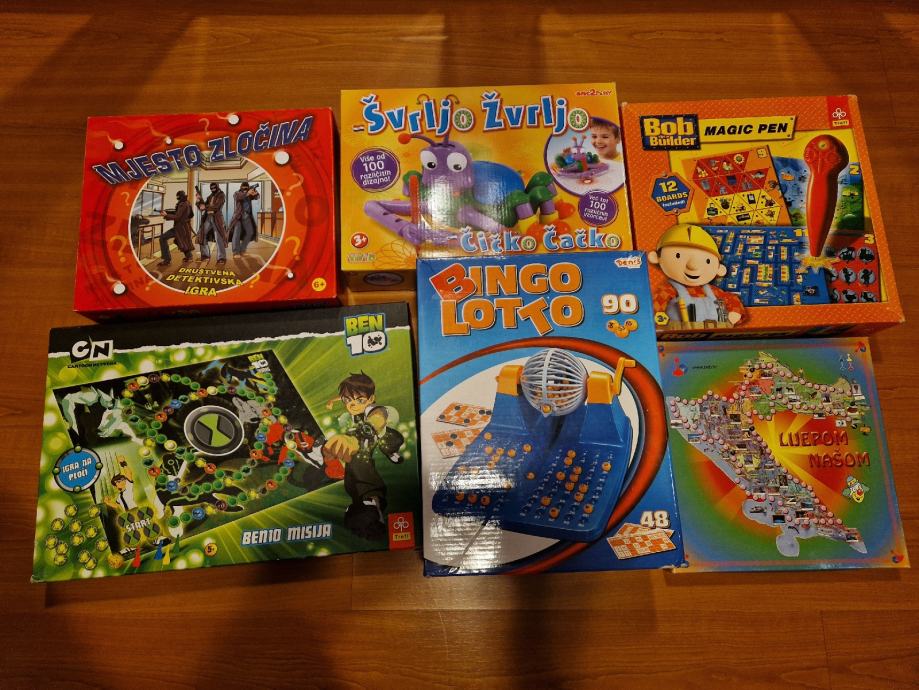 na prodaju su različite društvene igre koje su ili jedva igrane ili uopće nisu igrane. Nisu više interesantne pa se traži netko tko će se igarti s njima.