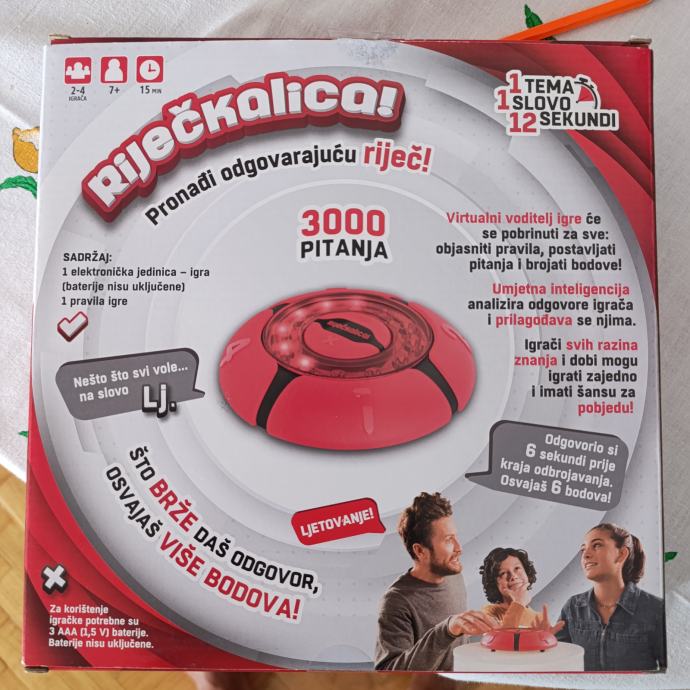 Prodajem Riječkalicu, društvenu igru za cijelu obitelj. Pogodna za djecu 7+, sadrži 3,000+ pitanja. Rabljena, očuvana u potpunosti kao nova.