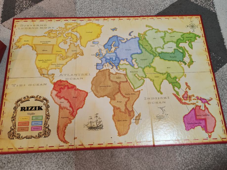 Prodajem društvenu igćeu Rizik. U kompletu 58 kartica, preko 300 figurica vojnika.