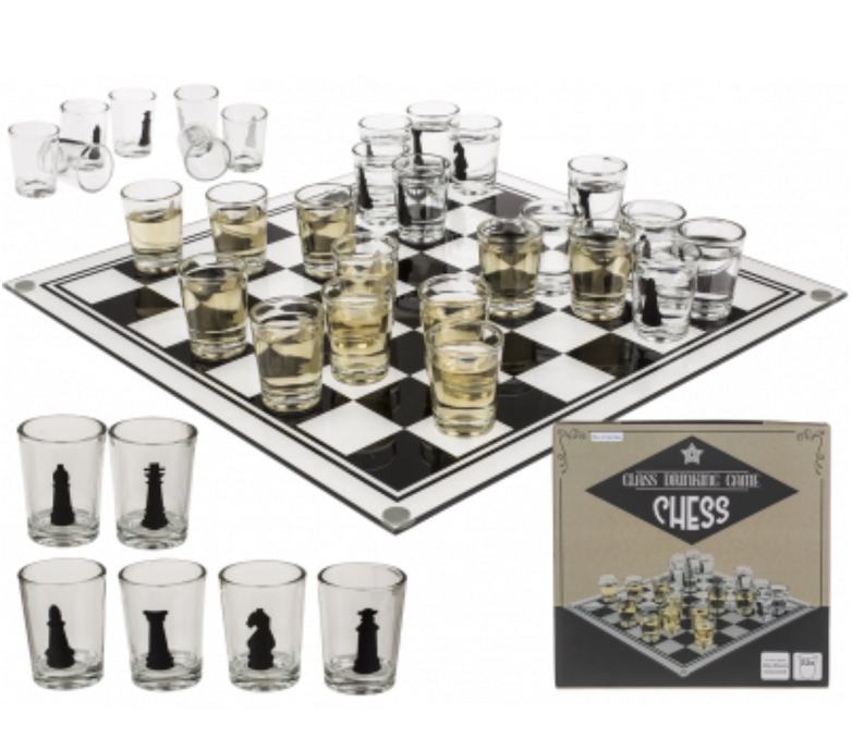Vježbajte svoje šahovske vještine uz zabavni Šah sa šalicama! Igra se sastoji od prekrasne, sjajne šahovske ploče dimenzija 35 x 35 cm i 32 staklene čašice sa slikama raznih šahovskih figura na njima. Prije nego počnete, napunite čaše pićem po izboru.