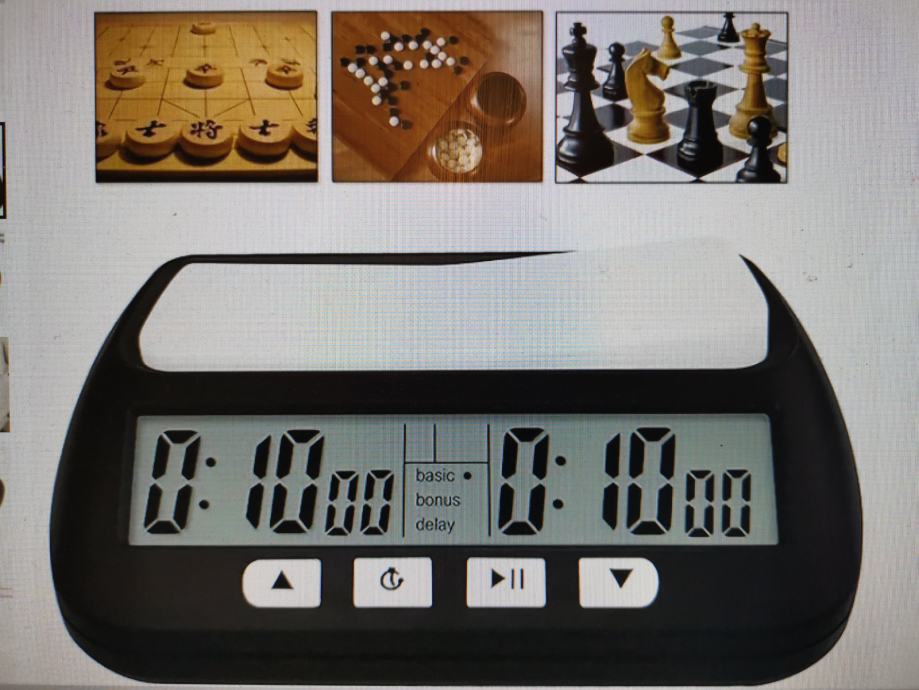 - Sat za šah, POTPUNO NOV I ZAPAKIRAN. Ovaj sat je pogodan za škole, klubove ili za kuću. Jednostavno programiranje, odbrojavanje i timer. Vremenske postavke između 1 sekunde i 9 sati i 30 minuta. Opcijski zvučni signal upozorenja u slučaju proteka vremena, cijena je 39 € (slika 10 i 11)