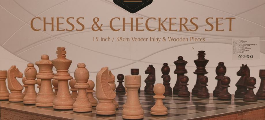 - Drveni šah. Figure izrađene od drva hrasta. Šahovska ploča izrađena od drva breze i bukve, 38 x 38 cm (slike 3 i 4), cijena 58 €. U kompletu su i dvije dodatne kraljice....