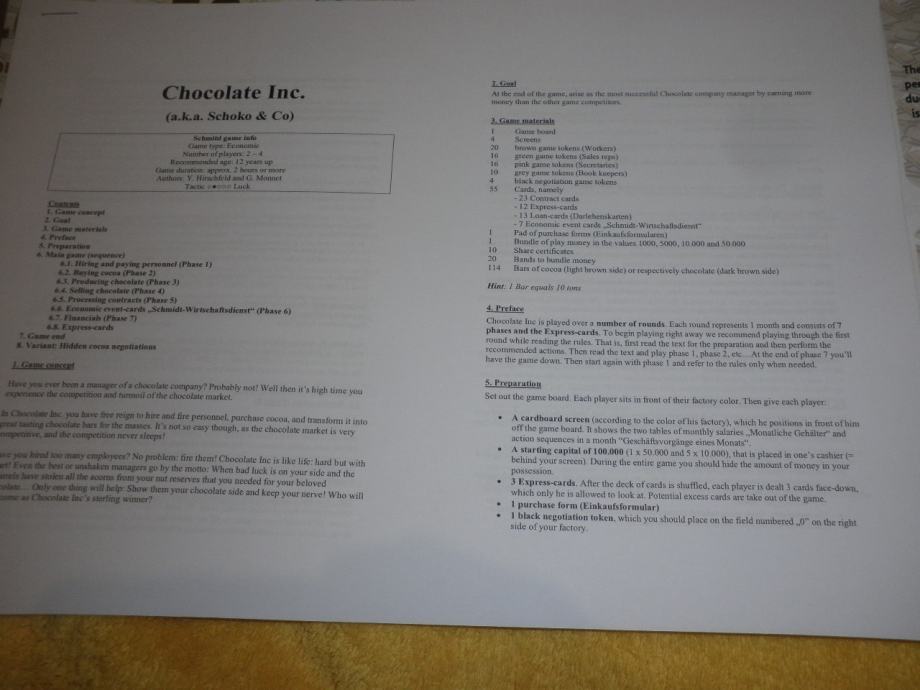 Njemačko izdanje sa slivanim engleskim prijevodima / karticama i engleskim pravilima.