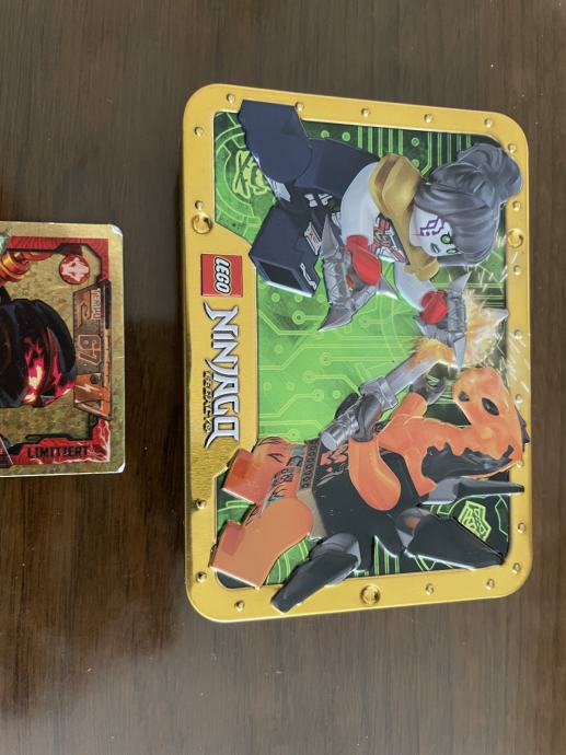 Ovo je set kolekcionarskih karata LEGO NINJAGO s prigodnom limenom kutijom za pohranu.